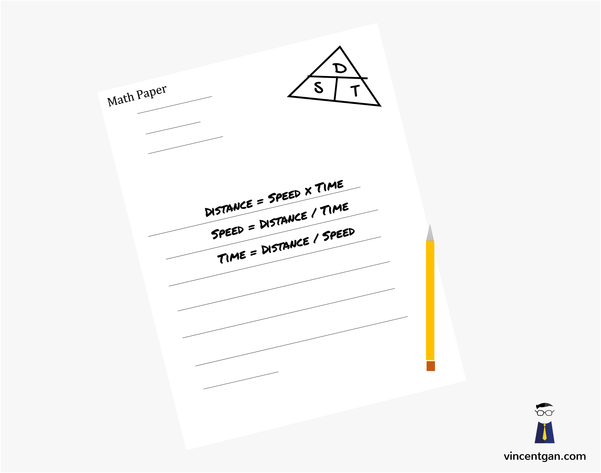 Do you remember your DST triangle? It was the easy way to remember the distance, speed and time equations. I recall always drawing it out at the corner of my exam paper to refer to! (memories…)